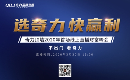 “選奇力 快盈利”奇力頂墻2020首場線上直播財富峰會,2020年3月30日19:30,不必出門,在線考察奇力,也期待您的加入!
