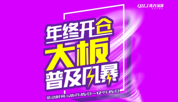 奇力“年終開倉 大板普及風暴”大勢啟動! 活動時間:11.15-12.15 詳情請咨詢奇力全國各大專賣店