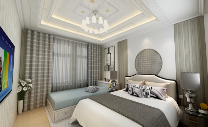 二級吊頂可以創造出層次感,小戶型在局部空間裝上一款集成吊頂,不僅可以隱藏線路于其間,亦可造成高低視覺設計的趣味。