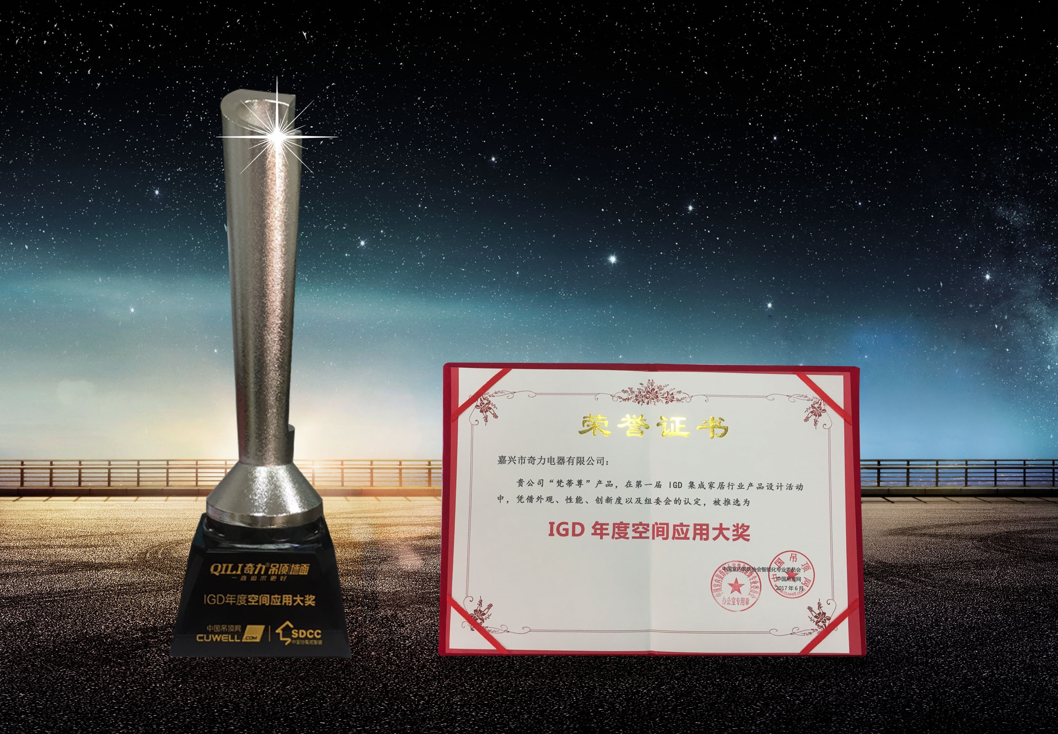 2017年6月9日,嘉興市奇力電器有限公司受邀參加“設·想”2017集成智裝產(chǎn)業(yè)聯(lián)盟創(chuàng)新論壇,并喜獲“IGD年度空間應用大獎”!