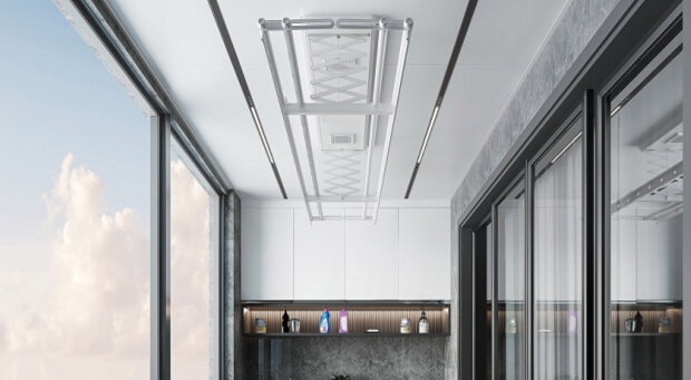 智能晾衣機是陽臺的標配,可以解決全家衣物的晾曬問題。還有內嵌式的陽臺柜,把洗衣機嵌入其中,省下更多的空間,增加收納功能。