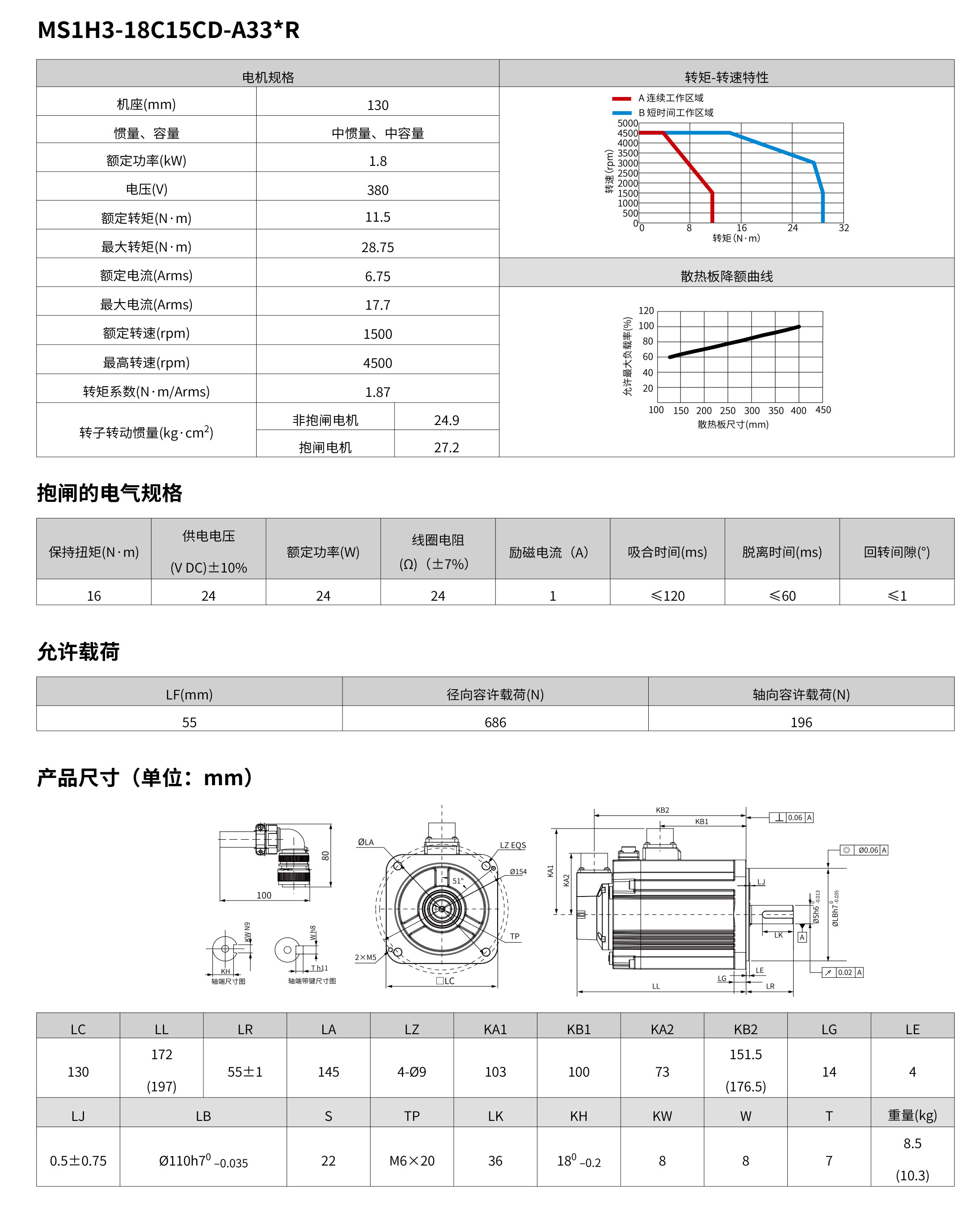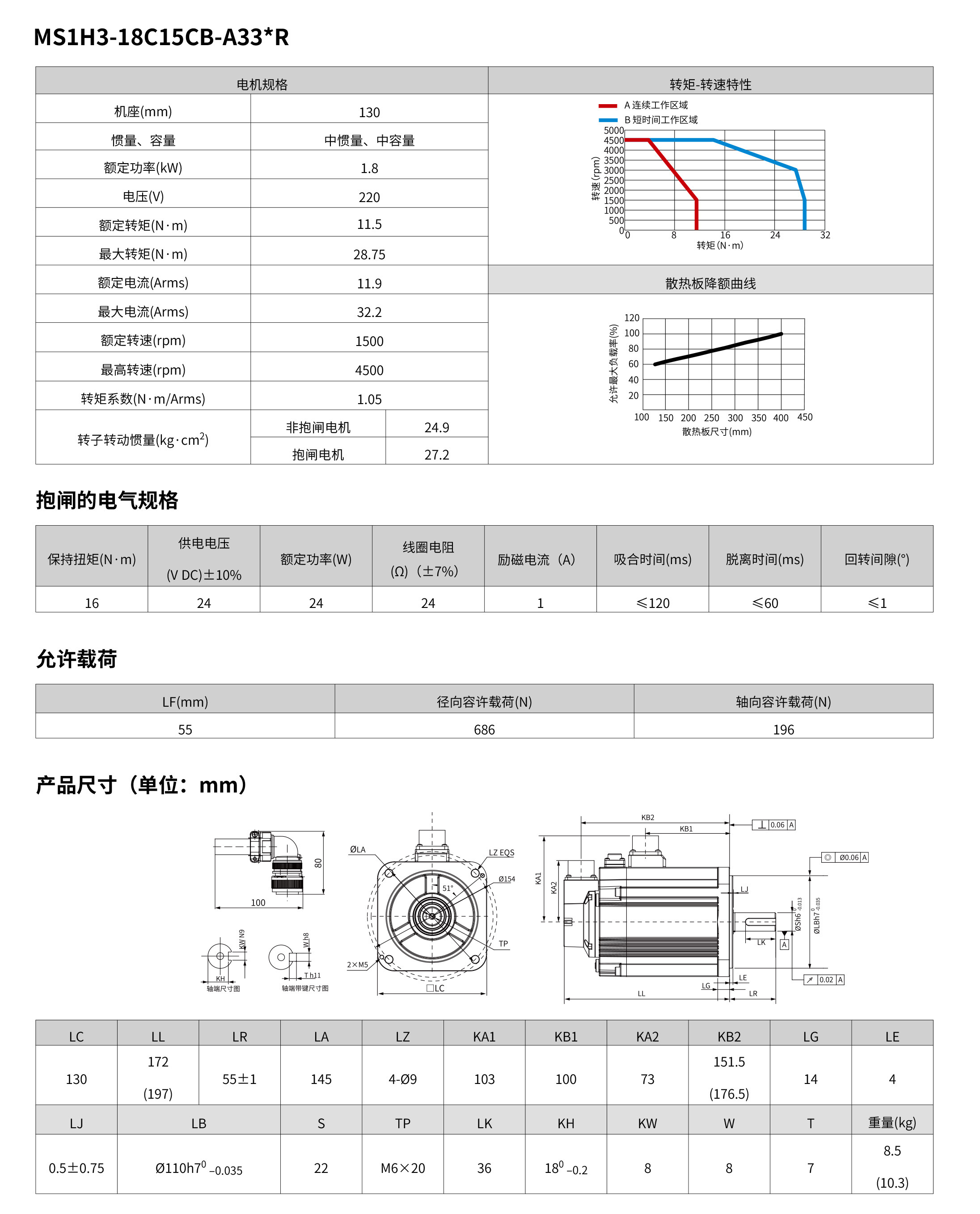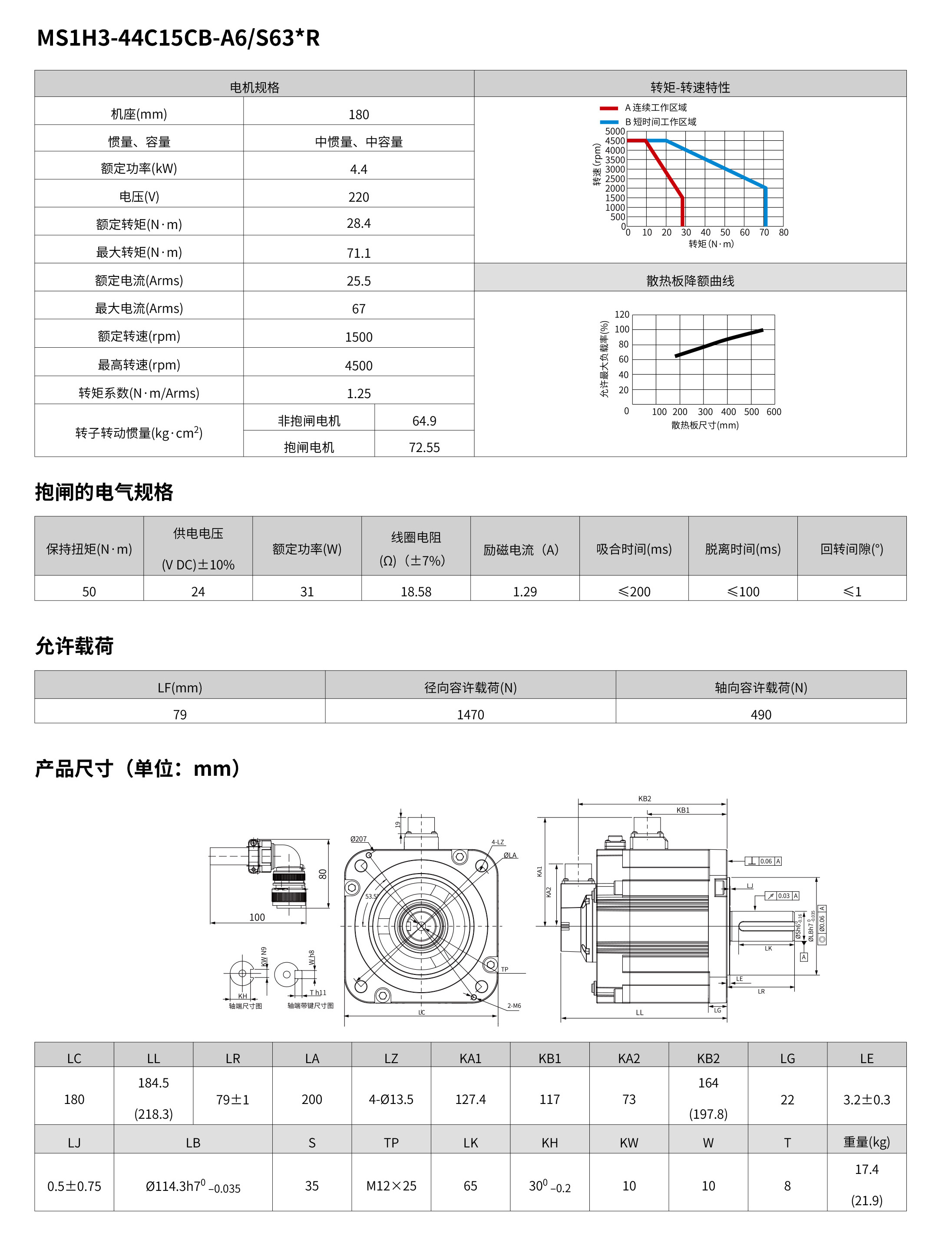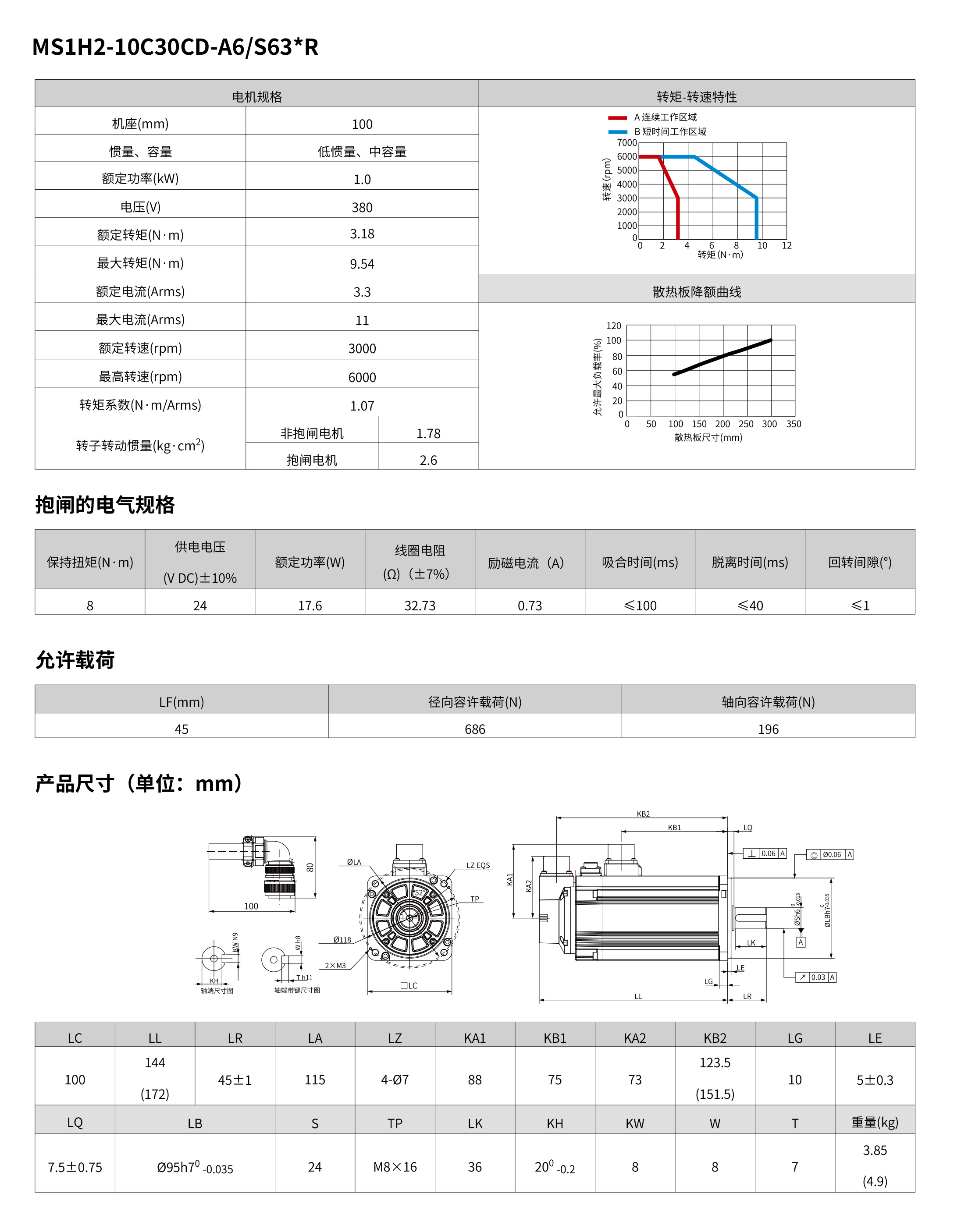 更高轉(zhuǎn)速:MS1H1 和 MS1H4 (40/60/80 機(jī)座 ) 最高轉(zhuǎn)速從 6000rpm 提升到 7000rpm;MS1H2 機(jī)型最高轉(zhuǎn)速從 5000rpm 提升到 6000rpm;MS1H3(130/180 機(jī)座)最高轉(zhuǎn)速從 3000rpm 提升到 4500rpm(說明:帶 26 位 &23 位編碼器機(jī)型)