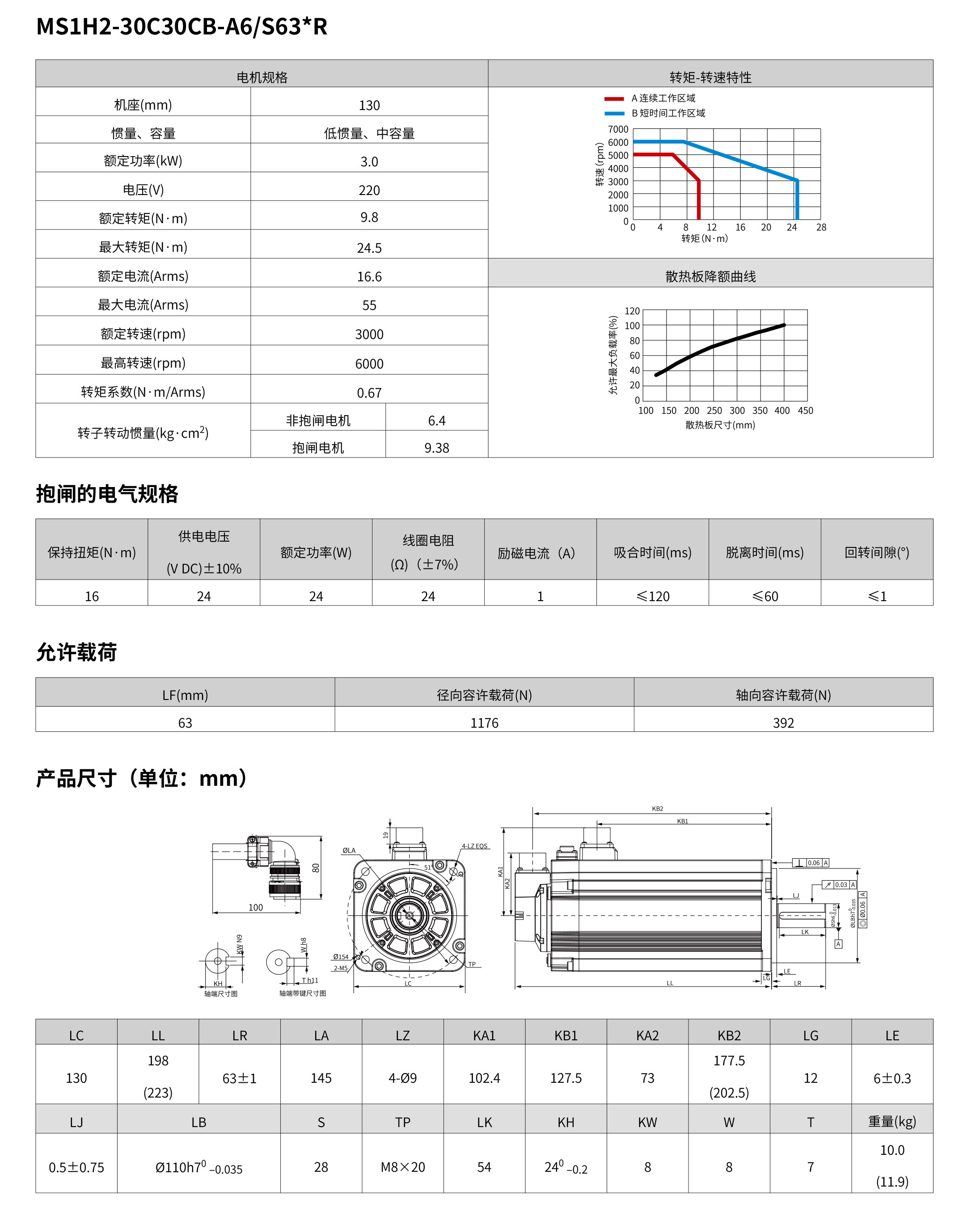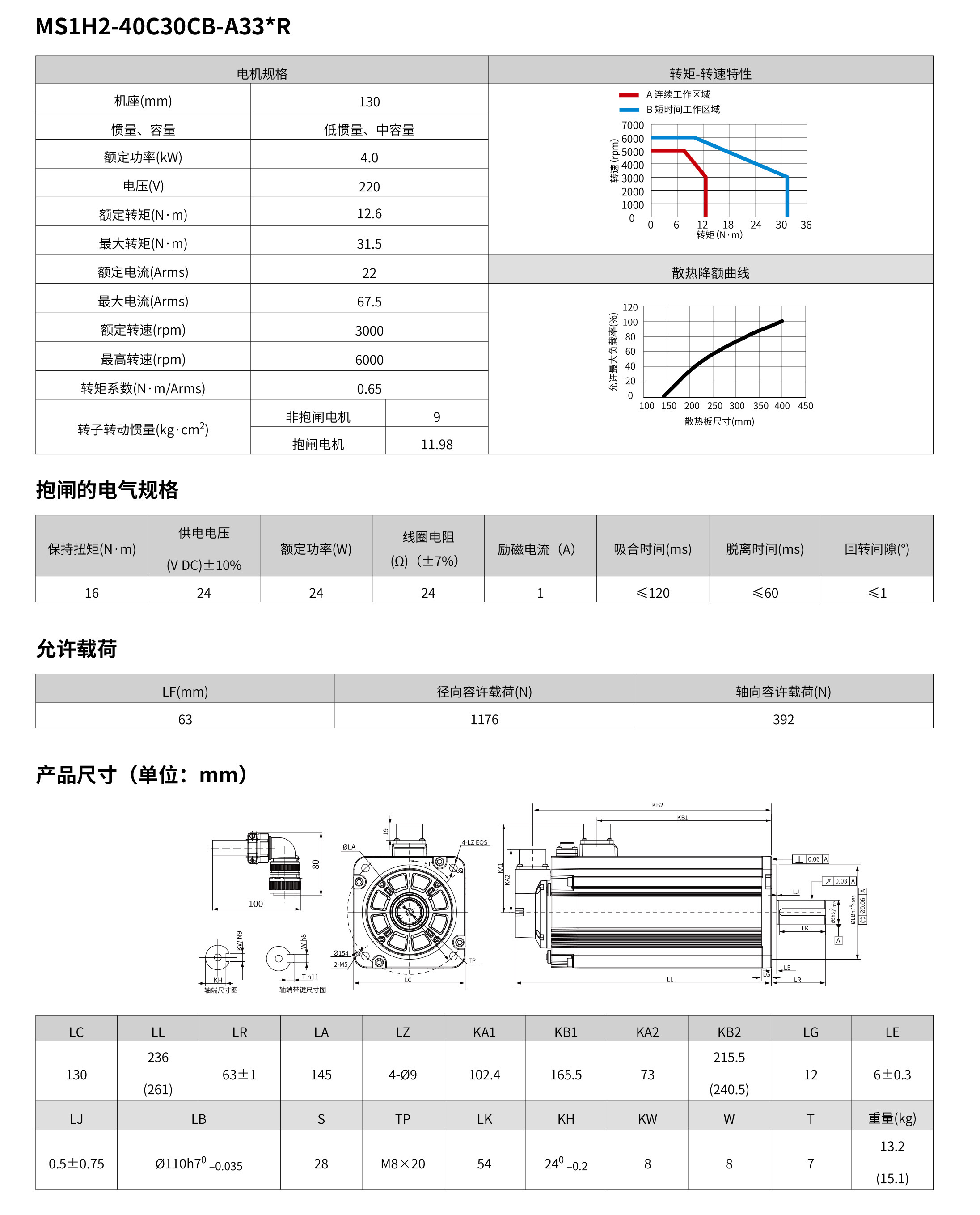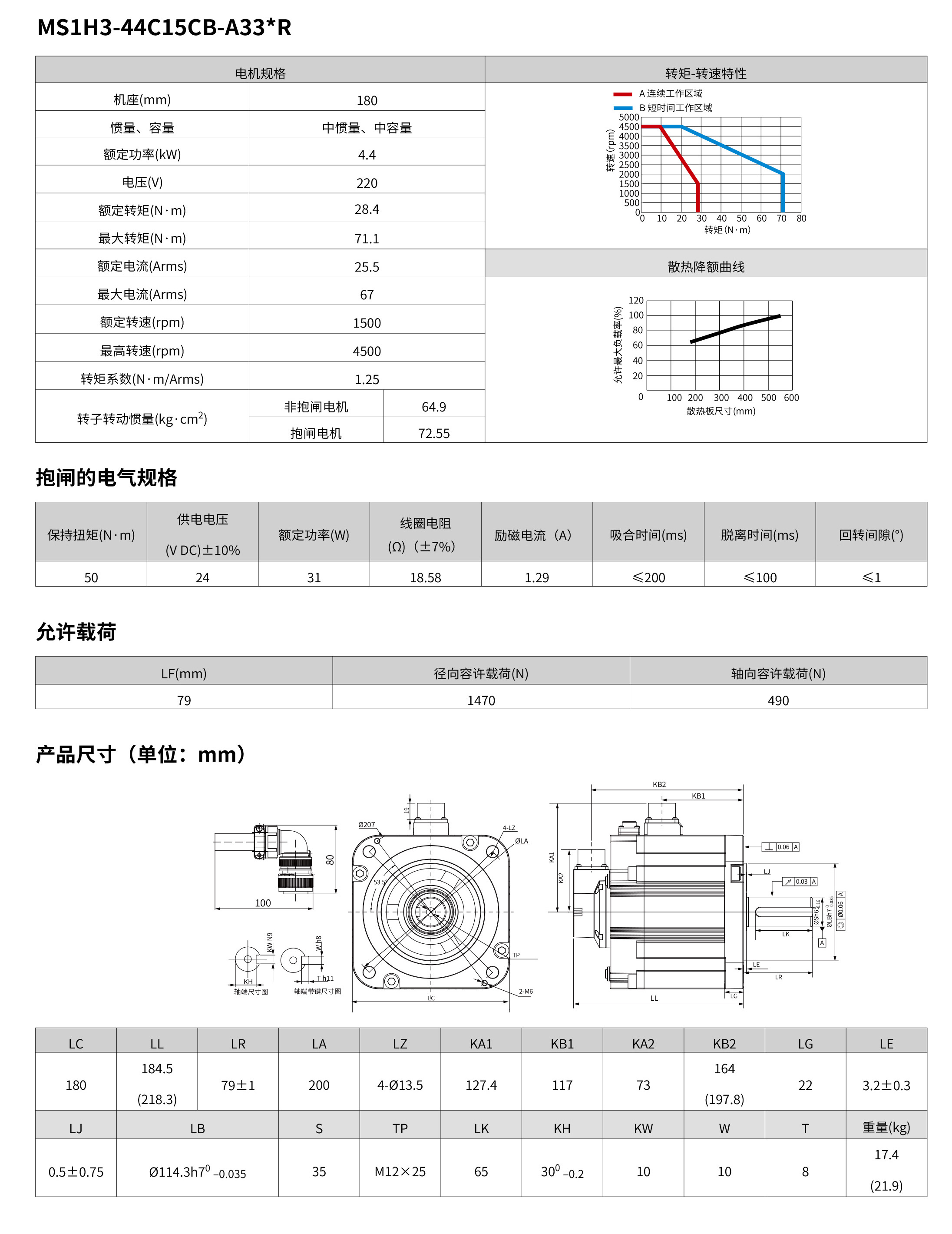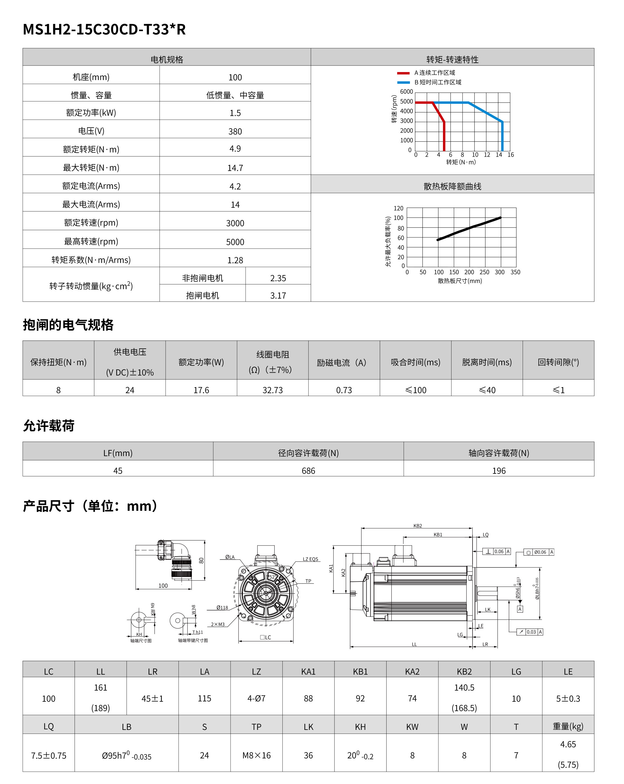 更高轉(zhuǎn)速:MS1H1 和 MS1H4 (40/60/80 機(jī)座 ) 最高轉(zhuǎn)速從 6000rpm 提升到 7000rpm;MS1H2 機(jī)型最高轉(zhuǎn)速從 5000rpm 提升到 6000rpm;MS1H3(130/180 機(jī)座)最高轉(zhuǎn)速從 3000rpm 提升到 4500rpm(說明:帶 26 位 &23 位編碼器機(jī)型)