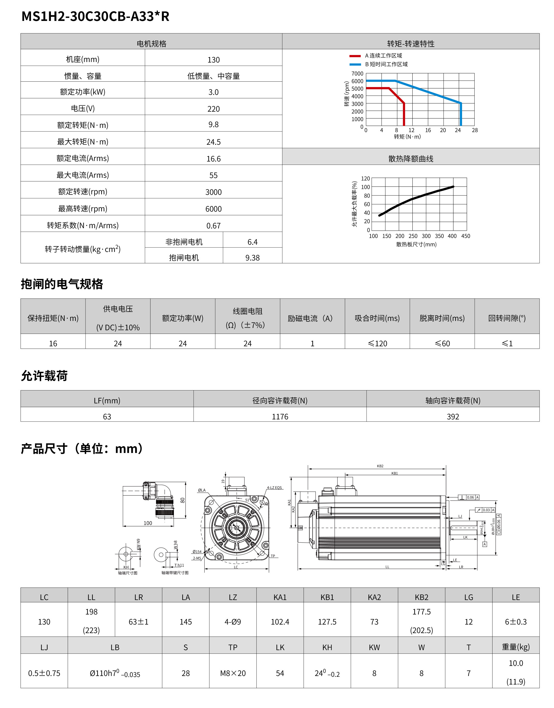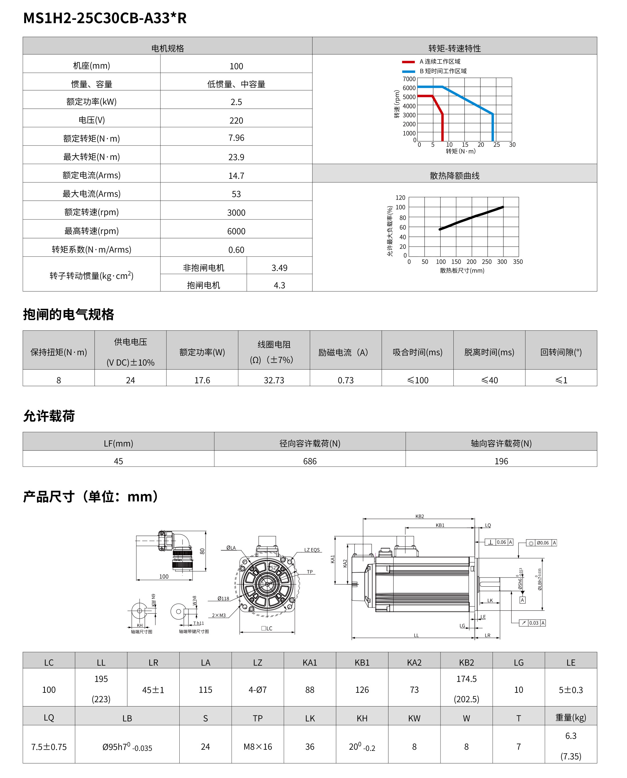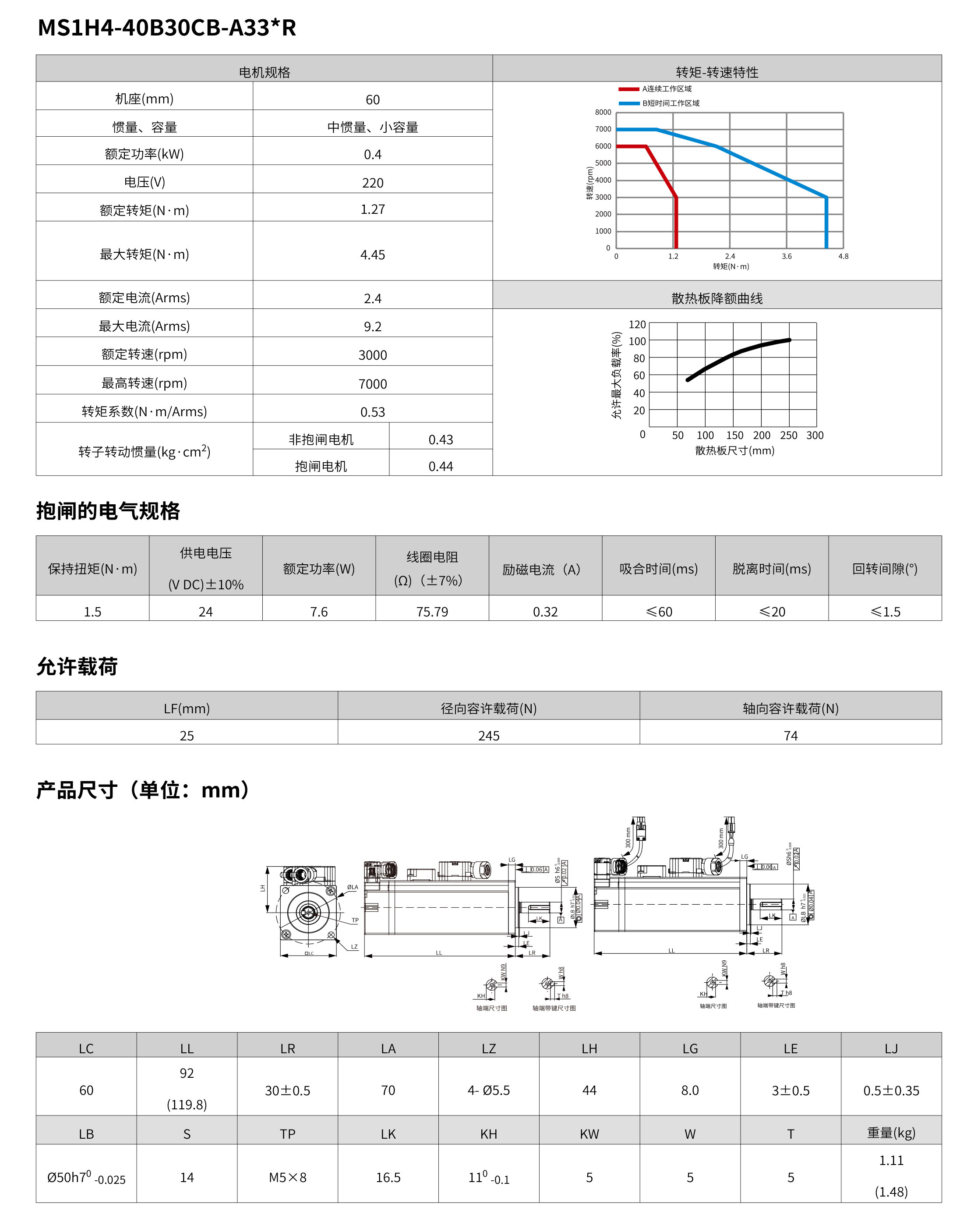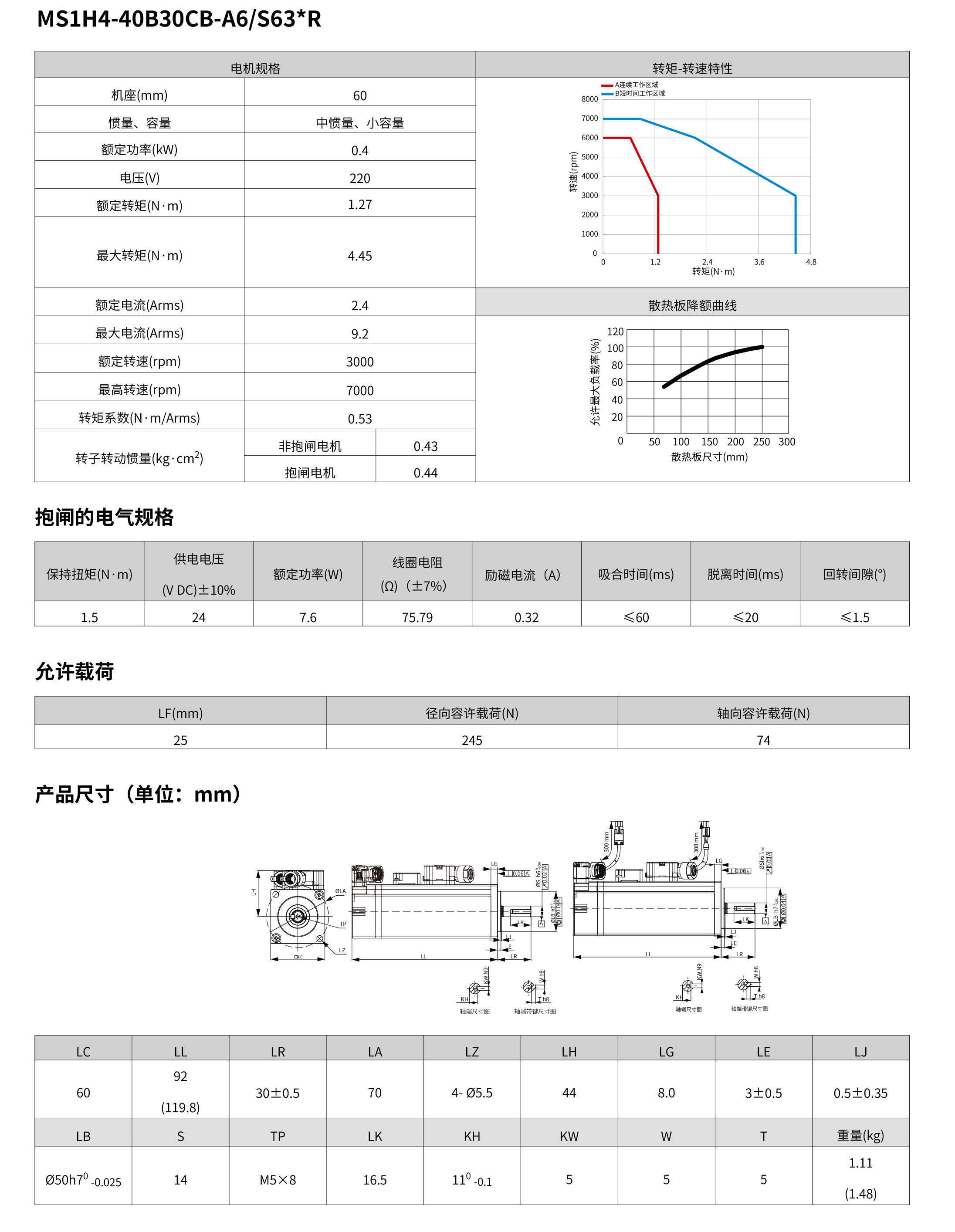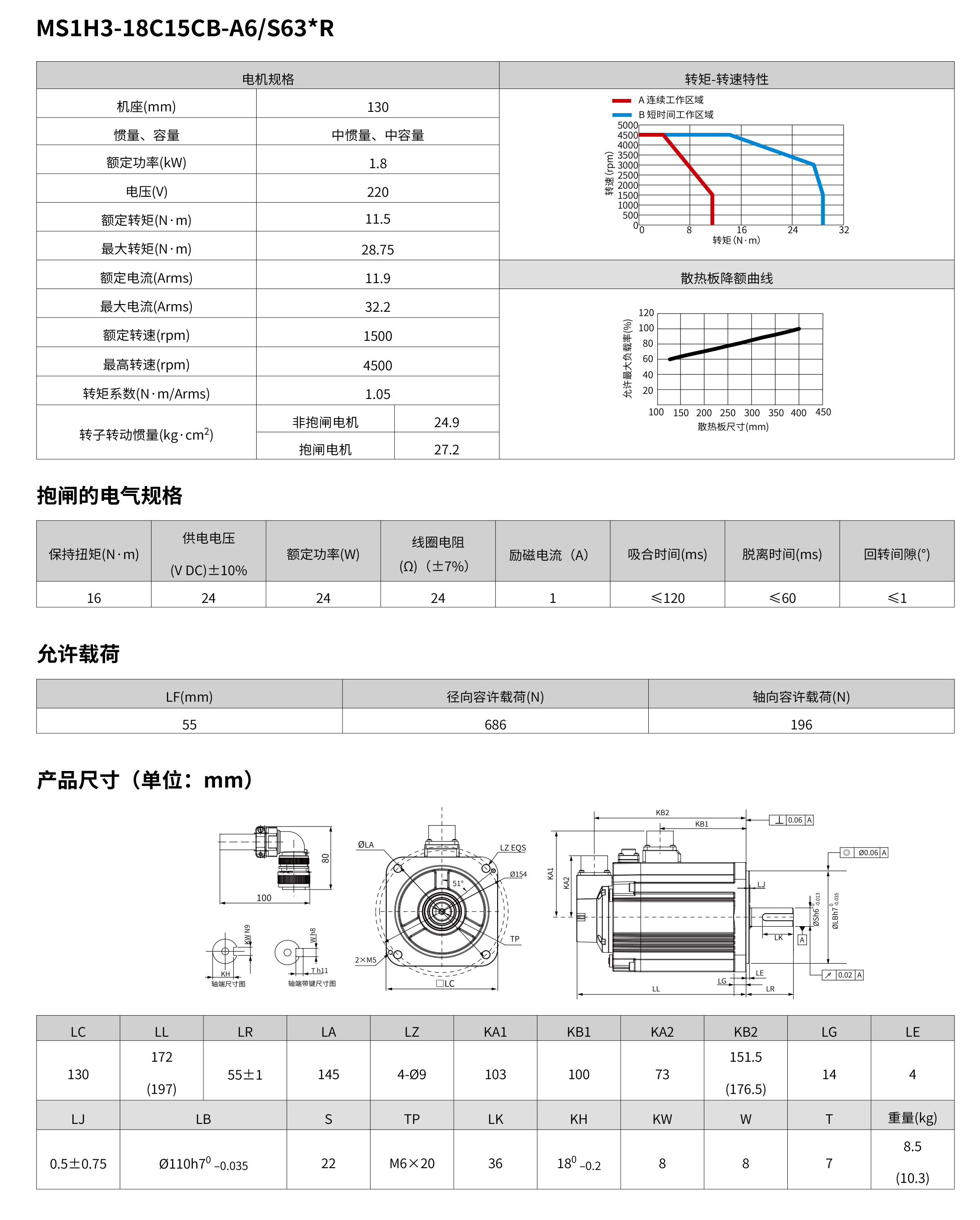 更高轉(zhuǎn)速:MS1H1 和 MS1H4 (40/60/80 機(jī)座 ) 最高轉(zhuǎn)速從 6000rpm 提升到 7000rpm;MS1H2 機(jī)型最高轉(zhuǎn)速從 5000rpm 提升到 6000rpm;MS1H3(130/180 機(jī)座)最高轉(zhuǎn)速從 3000rpm 提升到 4500rpm(說明:帶 26 位 &23 位編碼器機(jī)型)