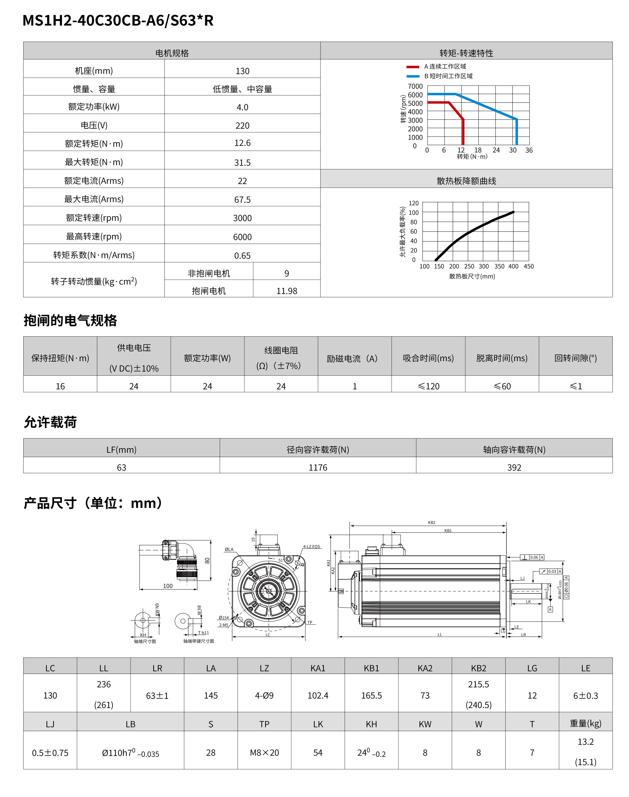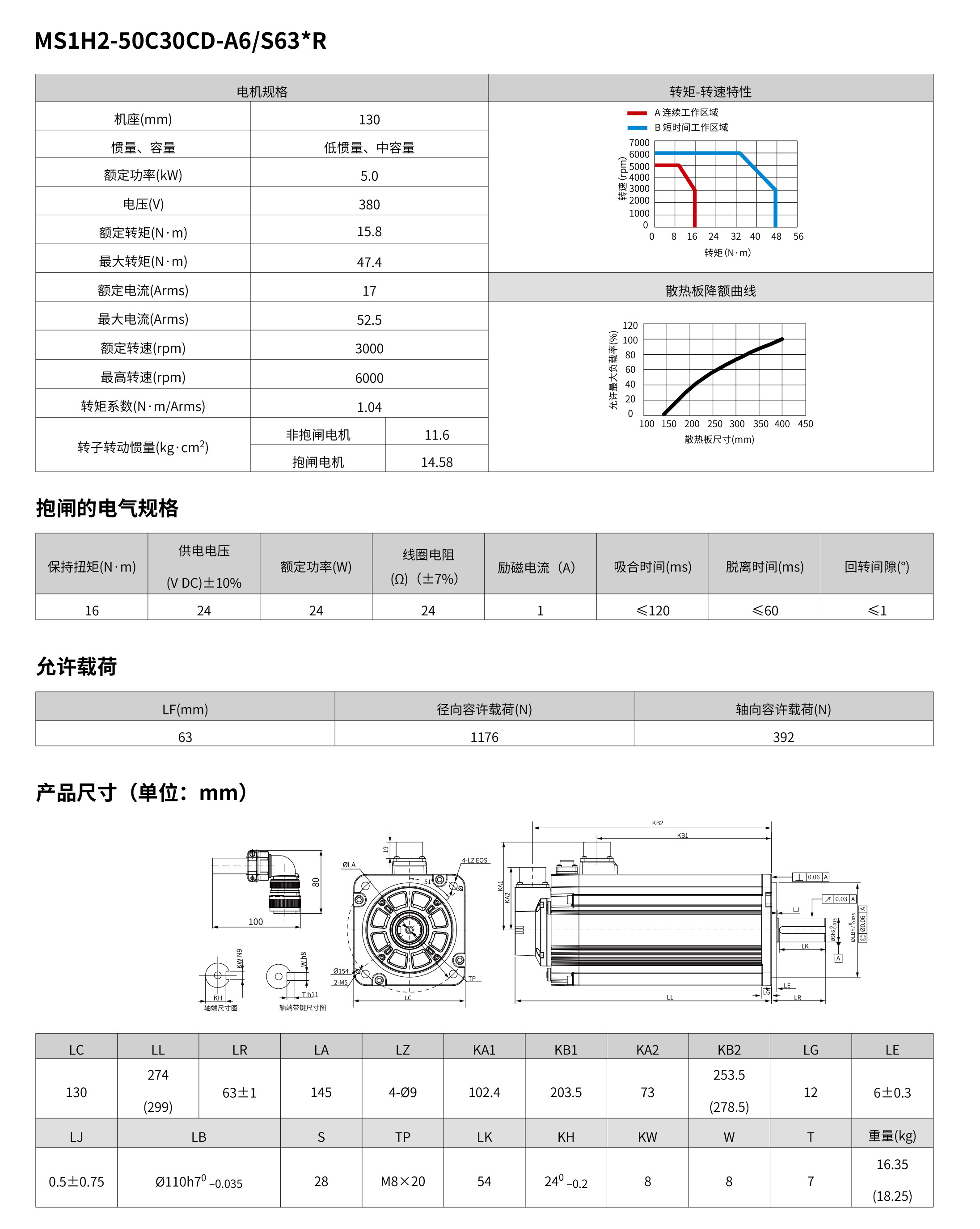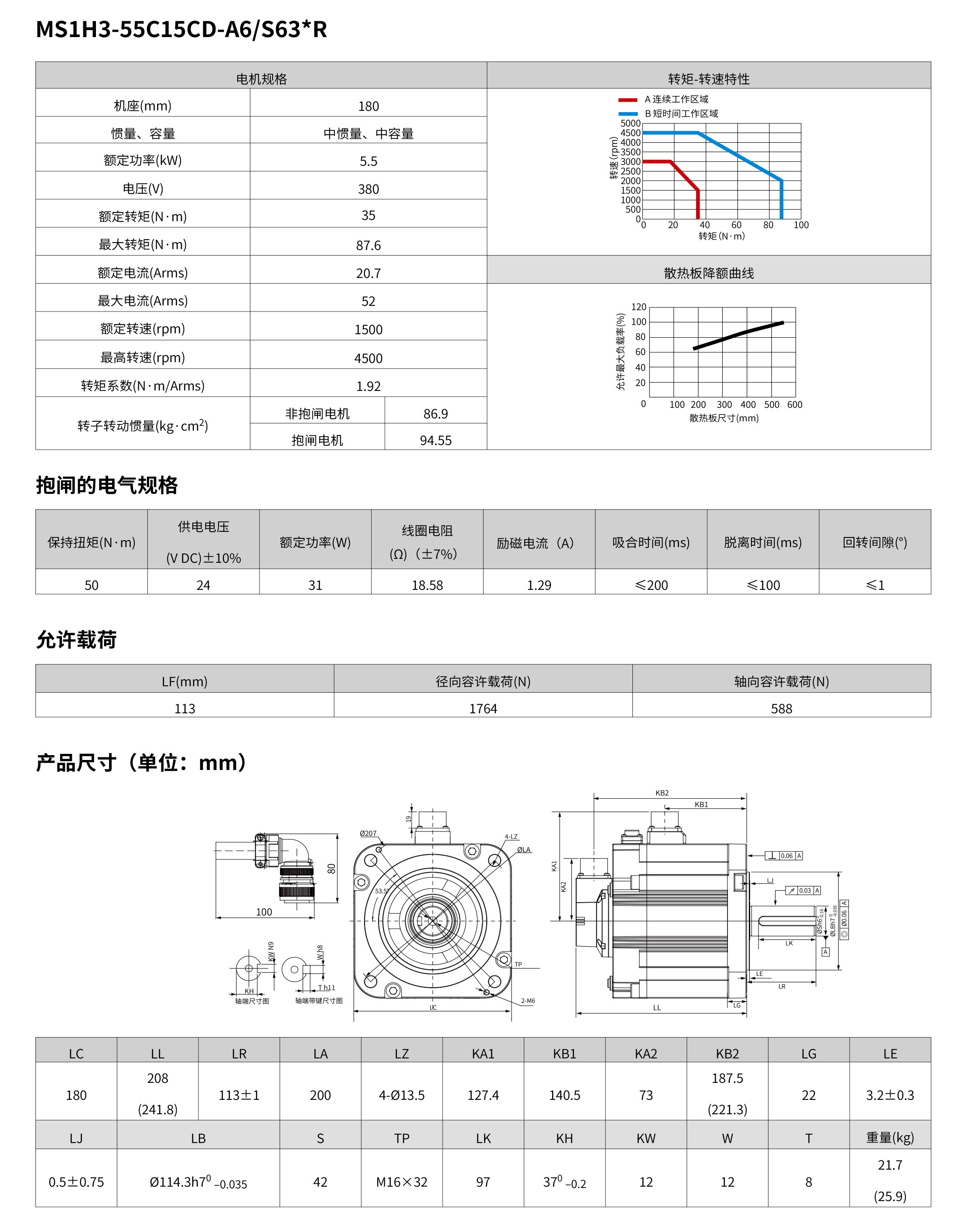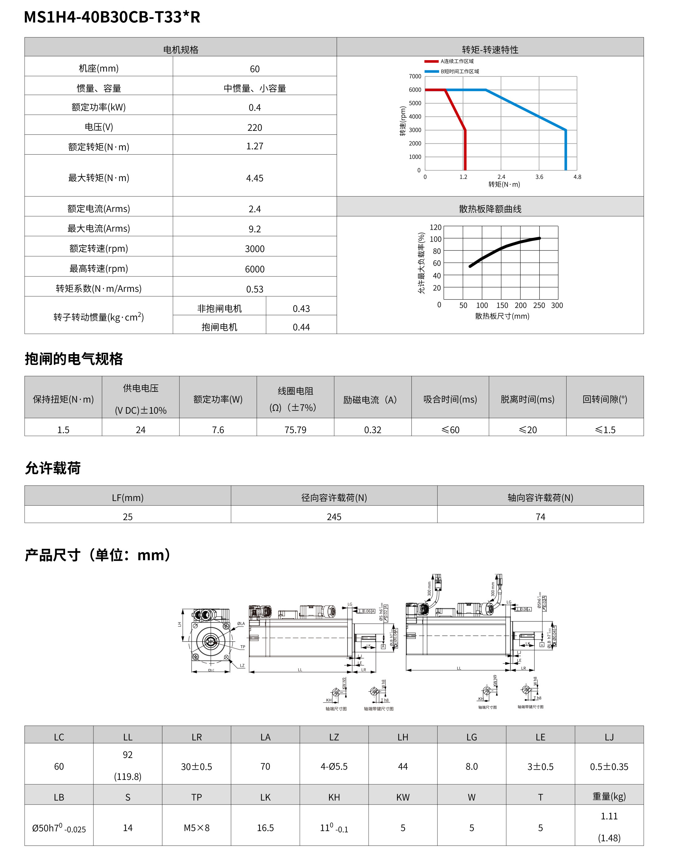 更高轉(zhuǎn)速:MS1H1 和 MS1H4 (40/60/80 機(jī)座 ) 最高轉(zhuǎn)速從 6000rpm 提升到 7000rpm;MS1H2 機(jī)型最高轉(zhuǎn)速從 5000rpm 提升到 6000rpm;MS1H3(130/180 機(jī)座)最高轉(zhuǎn)速從 3000rpm 提升到 4500rpm(說明:帶 26 位 &23 位編碼器機(jī)型)