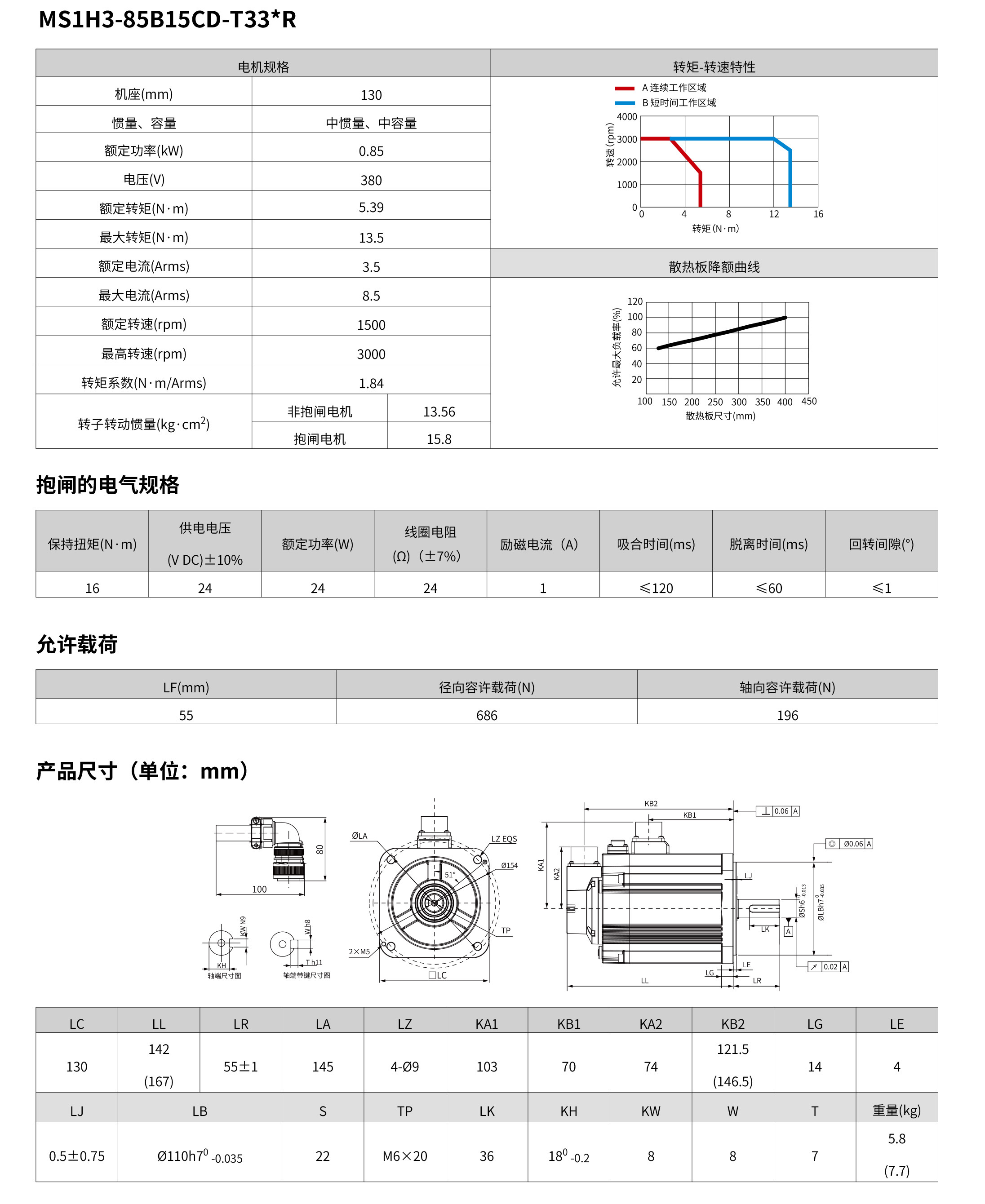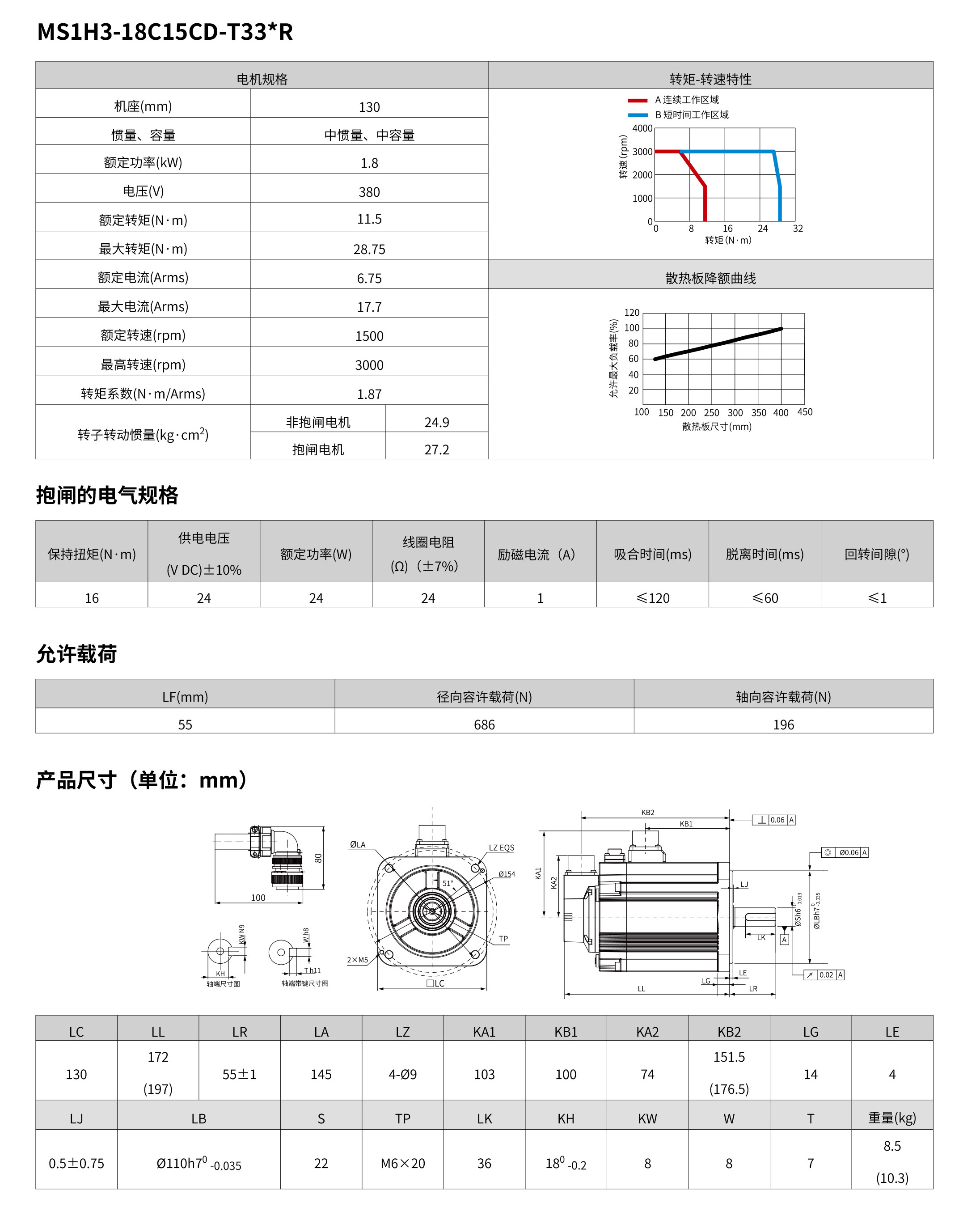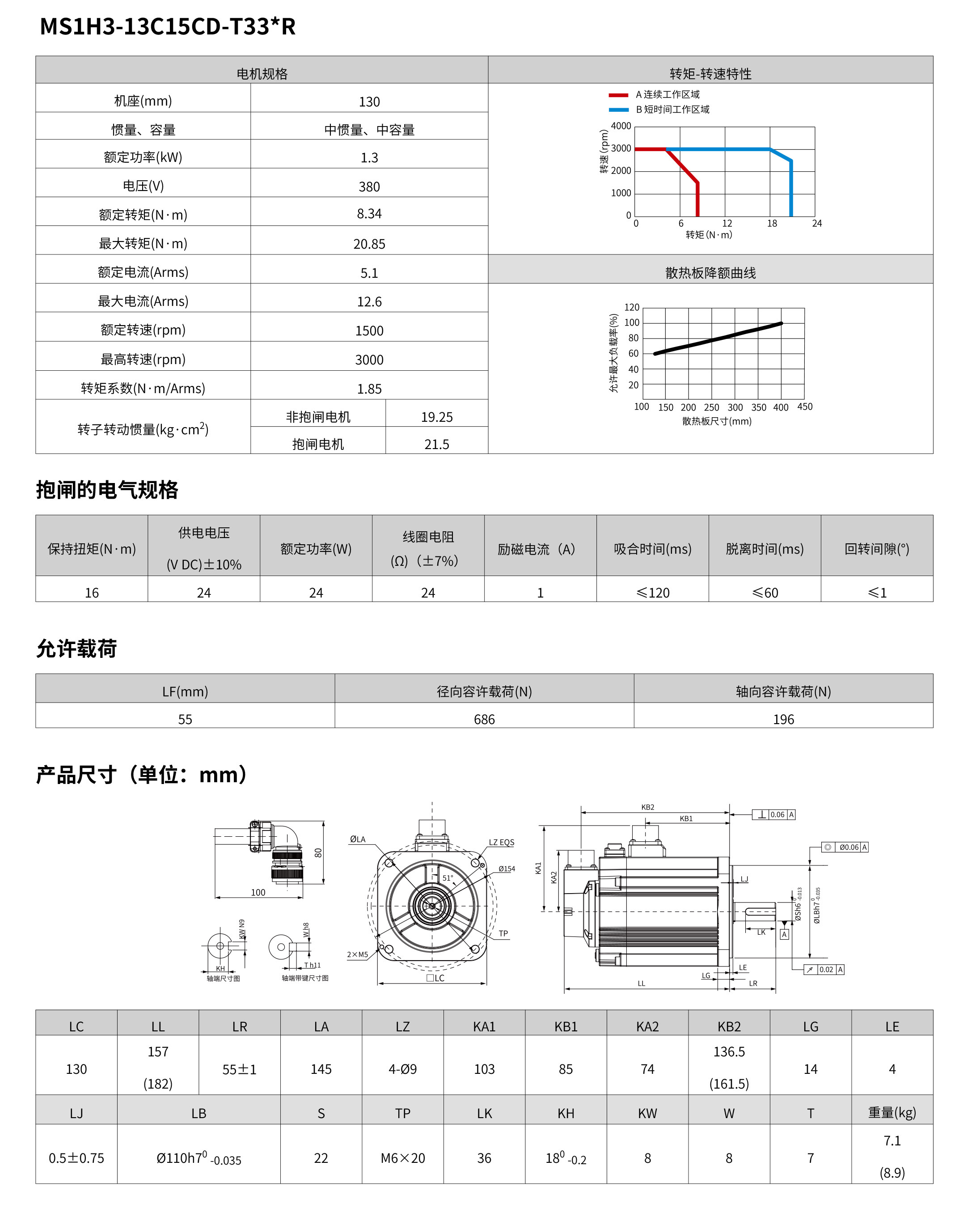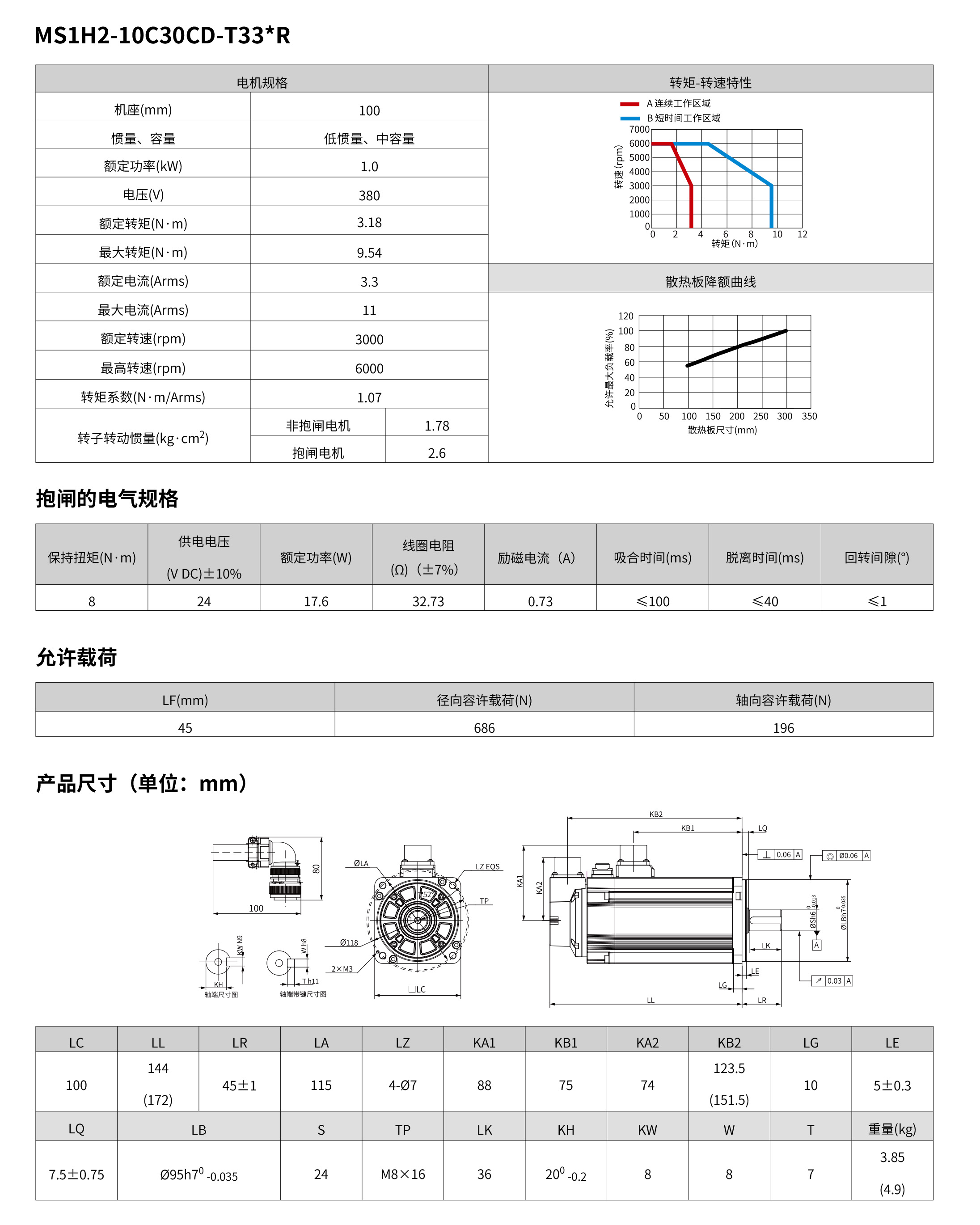 [3]帶T017驅(qū)動器請參考該型號的轉(zhuǎn)矩-轉(zhuǎn)速特性曲線。