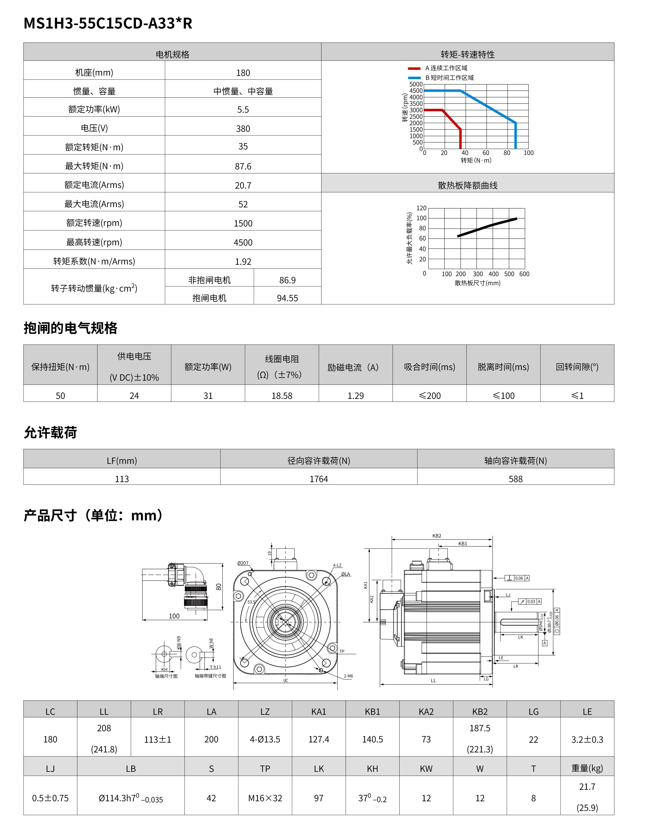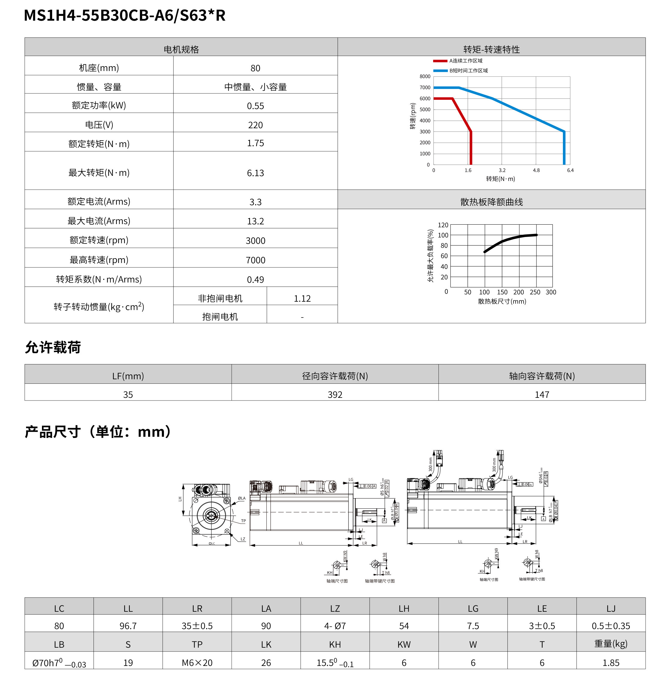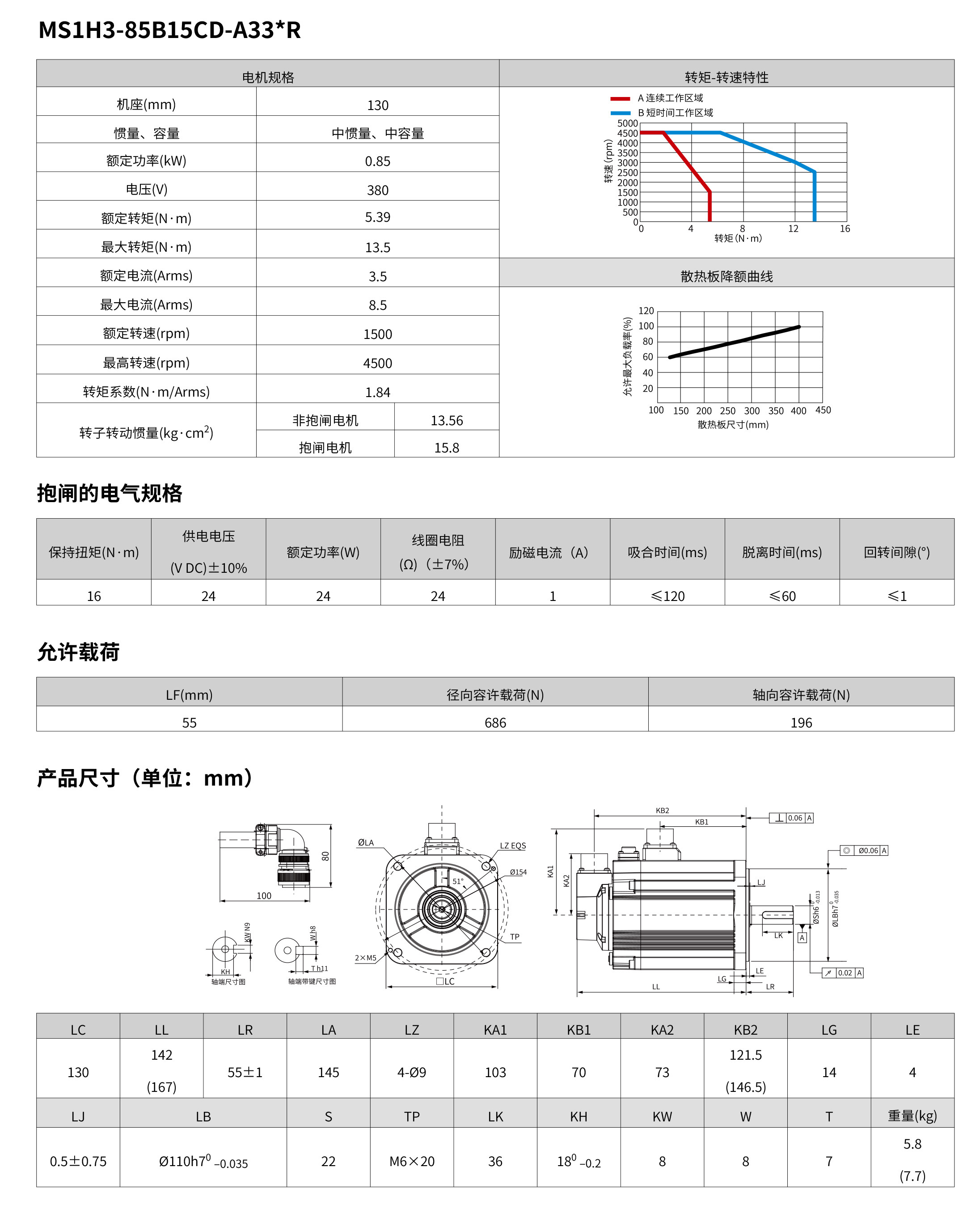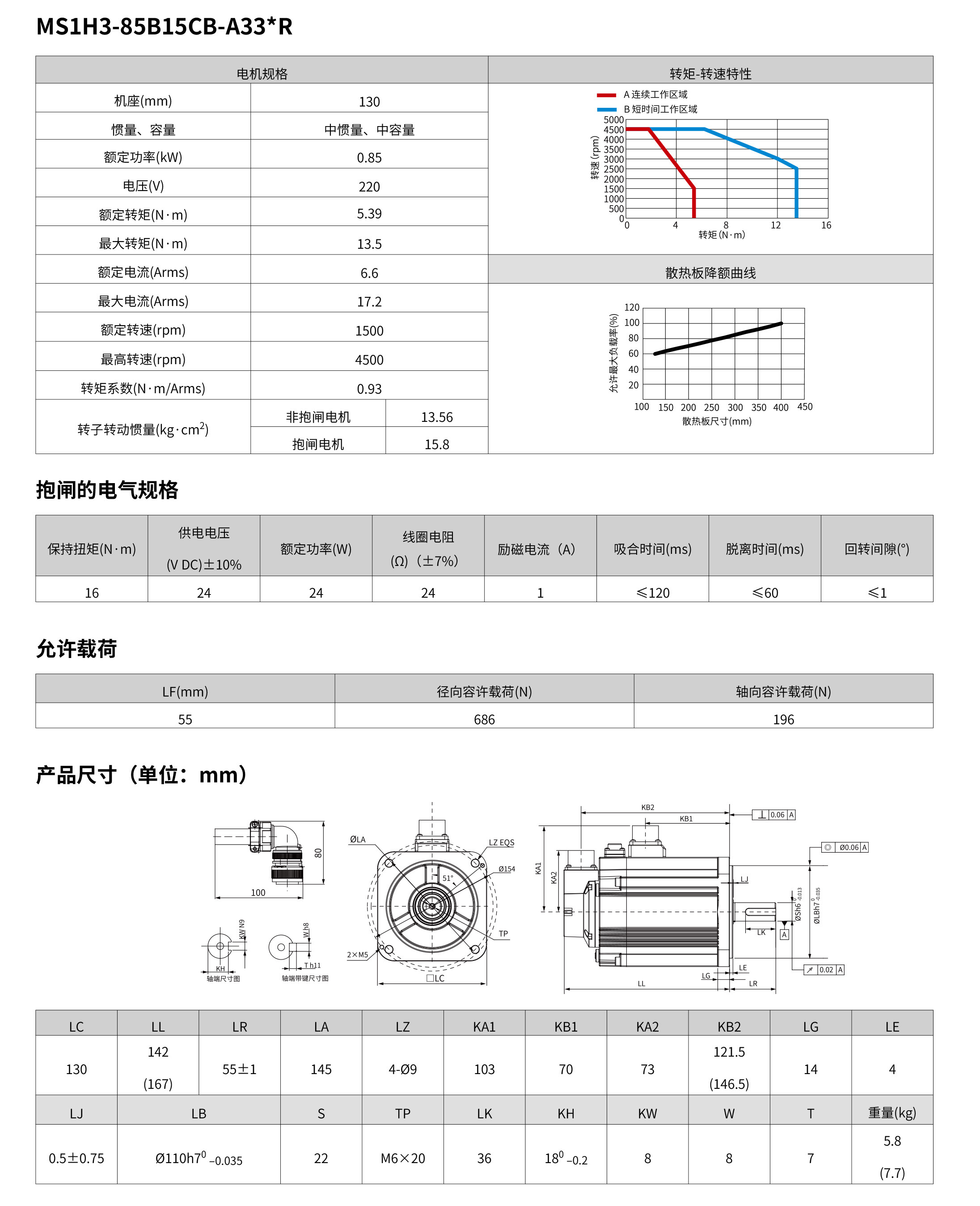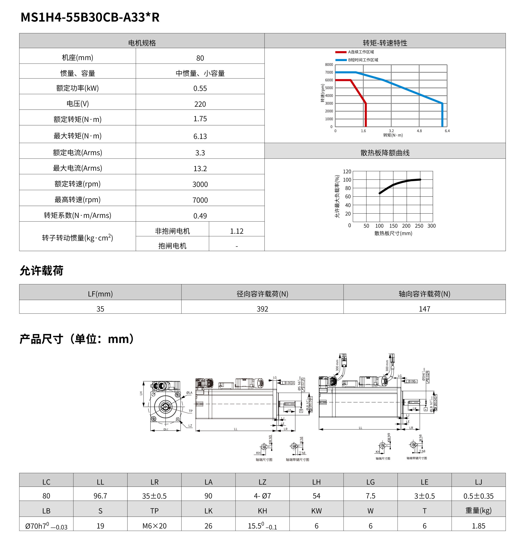 [3]帶T017驅(qū)動器請參考該型號的轉(zhuǎn)矩-轉(zhuǎn)速特性曲線。