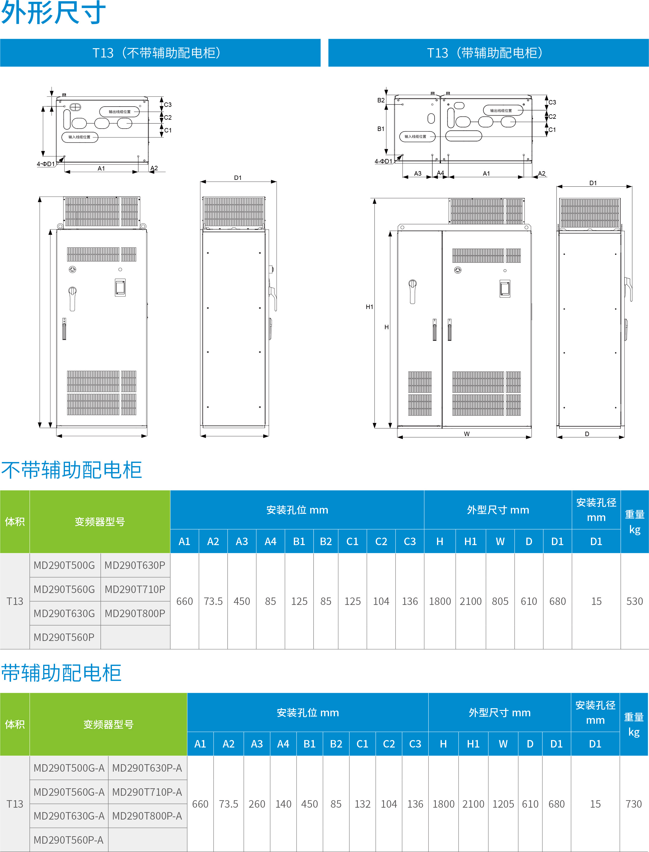 | 型號 | MD290T45 G/55P(B) | MD290T55 G/75P(B) | MD290T75 G/90P(B) | MD290T90 G/110P | MD290 T110G/ 132P | MD290 T132G/ 160P | MD290 T160G/ 200P | |||||||||
