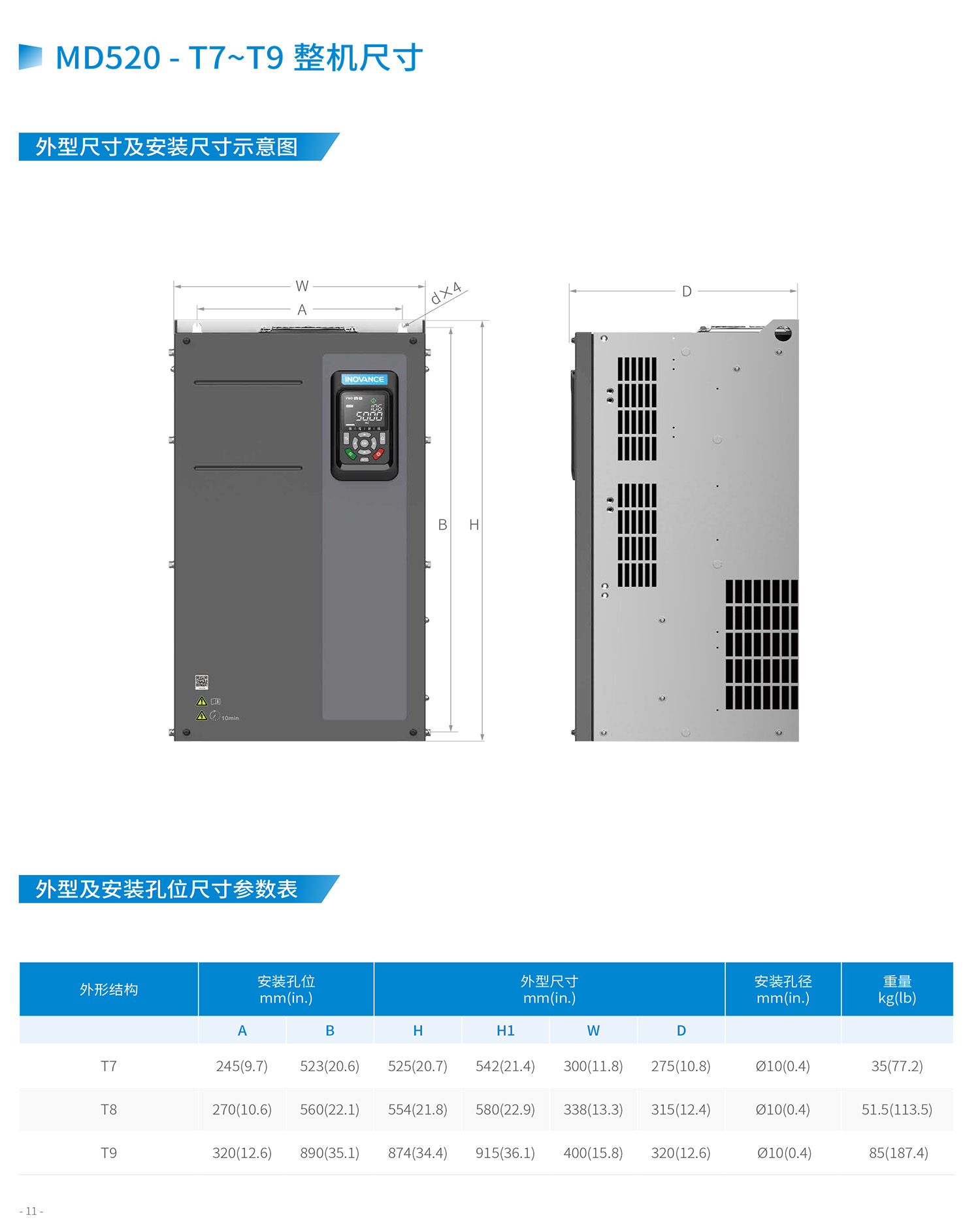 | MD520-2T7.5B(S) | T4 | 18.9 | 41.3 | 7.5 | 10.0 | 32.0 | 27.0 | 44.0 | 11.0 | 15.0 | 37.0 |