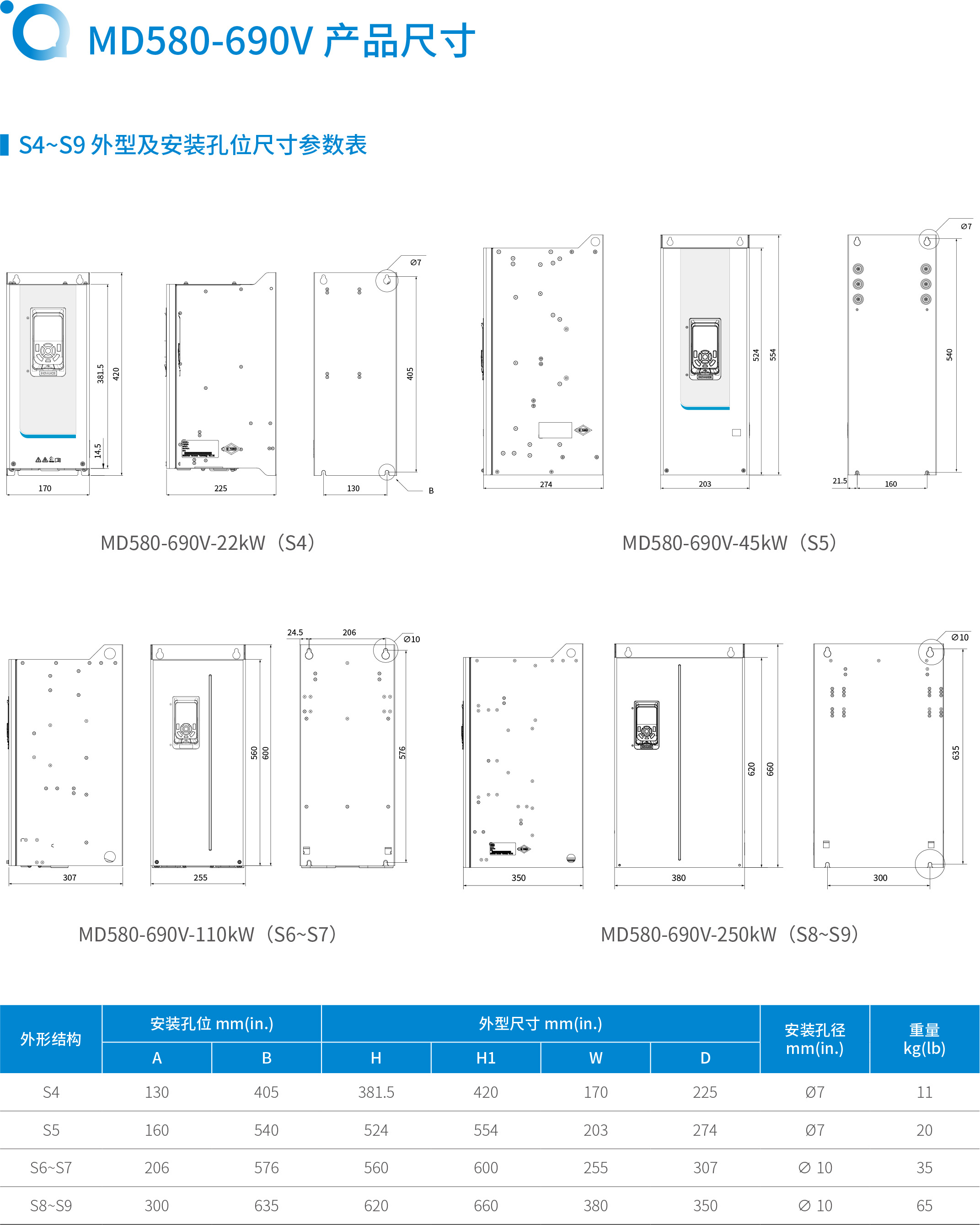 | MD520-2T15(B)(S) | T6 | 26.1 | 57.0 | 15.0 | 20.0 | 60.0 | 31.6 | 71.0 | 18.5 | 25.0 | 75.0 |
