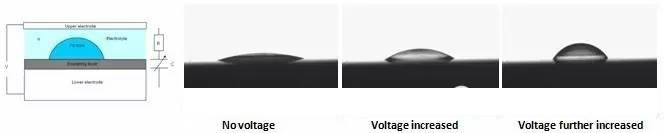 我們知道,傳統(tǒng)的變焦鏡頭是通過調(diào)整兩個固定焦距的鏡頭之間的距離來實(shí)現(xiàn)變焦的。而傳導(dǎo)型液體鏡頭使用兩種不能融合的液體,每一種液體擁有不同的折射率,生成一種與傳統(tǒng)的高質(zhì)量的光學(xué)鏡頭一樣的可變聚焦鏡頭,而鏡頭大小卻可以減少到10mm,甚至更小。兩種液體,其中一種是導(dǎo)電的水性溶液,另一種是不導(dǎo)電的油。這兩種液體被裝在小型管狀容器中,在容器內(nèi)形成相當(dāng)與玻璃鏡頭的月牙型的曲面,曲面的曲率就是液體鏡頭的焦距。油的抗水表面的濕潤效果可以使用電壓來改變(故名電潤濕),令表面變得更親水(濕潤)或更抗水。由于原先抗水(或親水)的表面現(xiàn)在變得更吸水(或抗水),油層不得不改變其形式,因此,通過調(diào)整在容器兩端的直流電電壓,就可以改變兩種不同的液體交接處月牙形表面的曲率,也就是鏡頭的焦距。