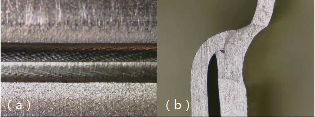 圖2 (a)杯口焊縫正面(b)杯口焊縫橫截面